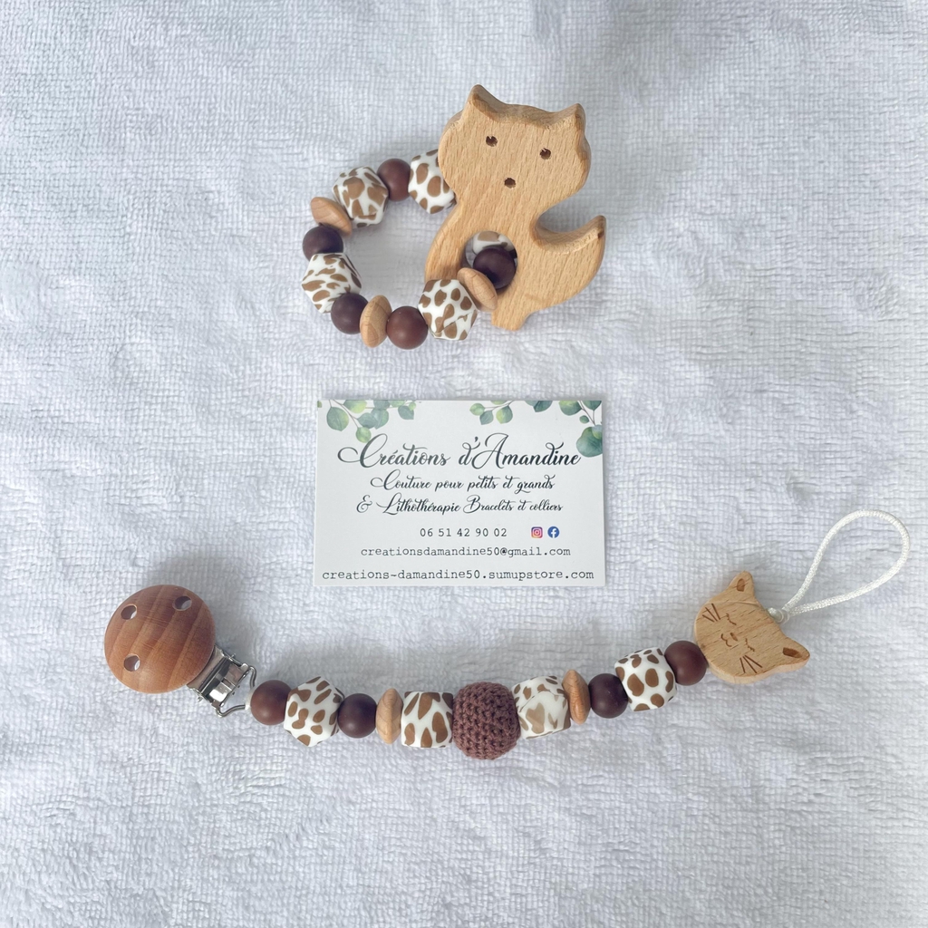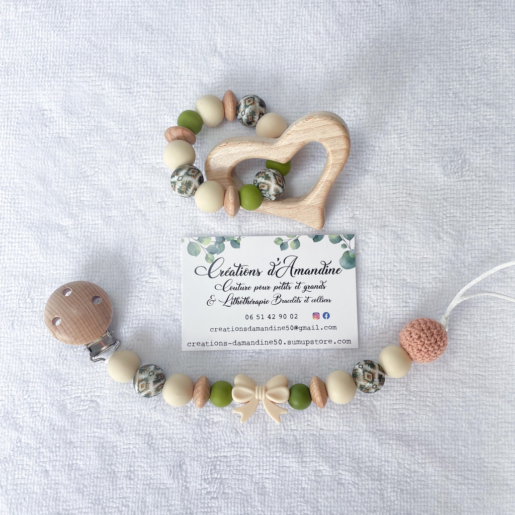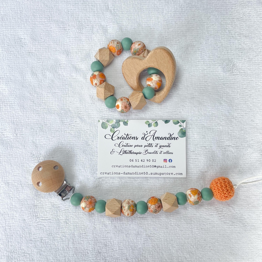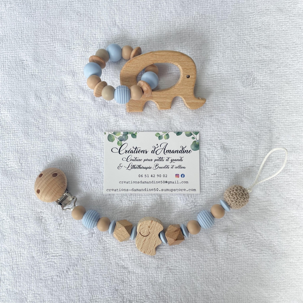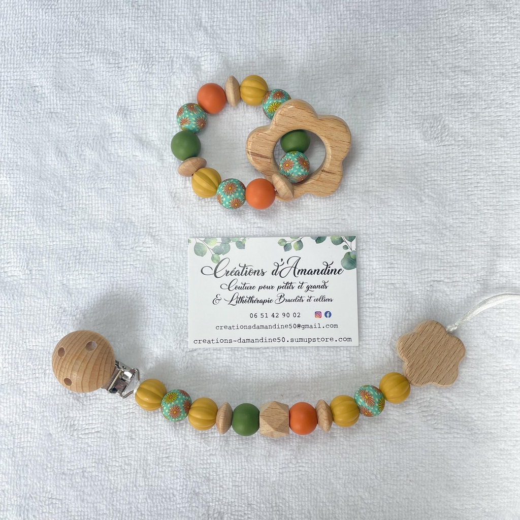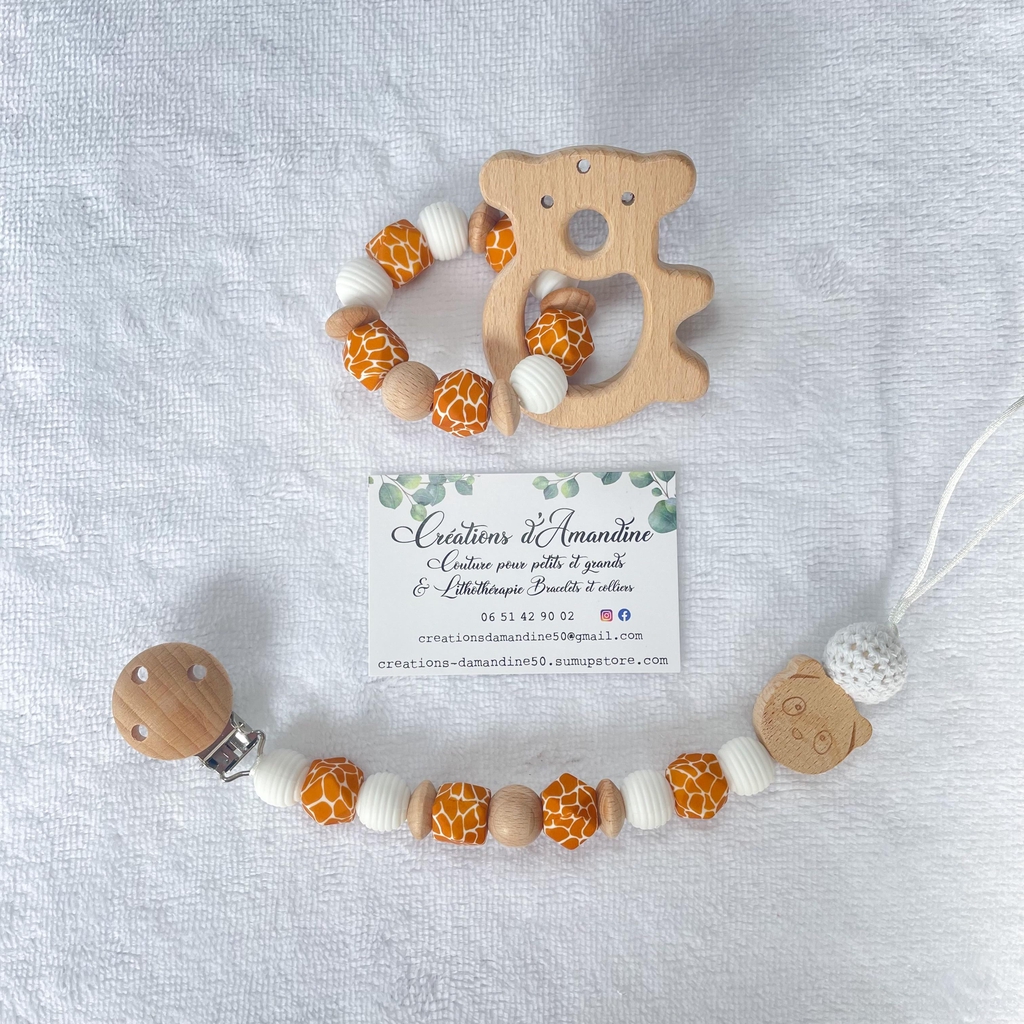 Attache tétine et anneau de dentition assortis.