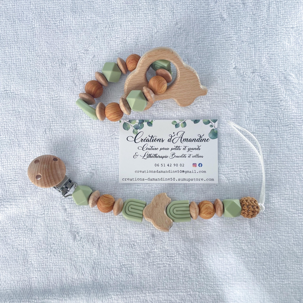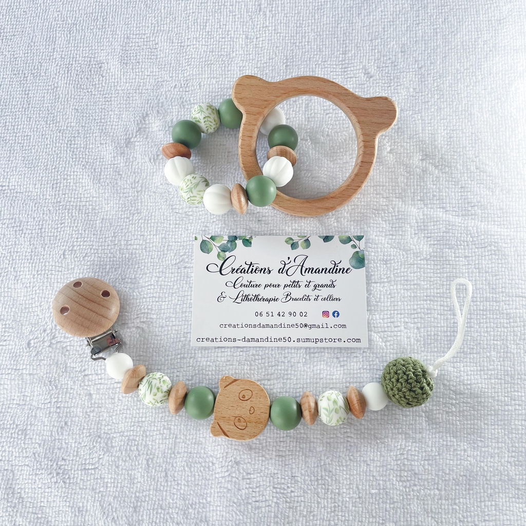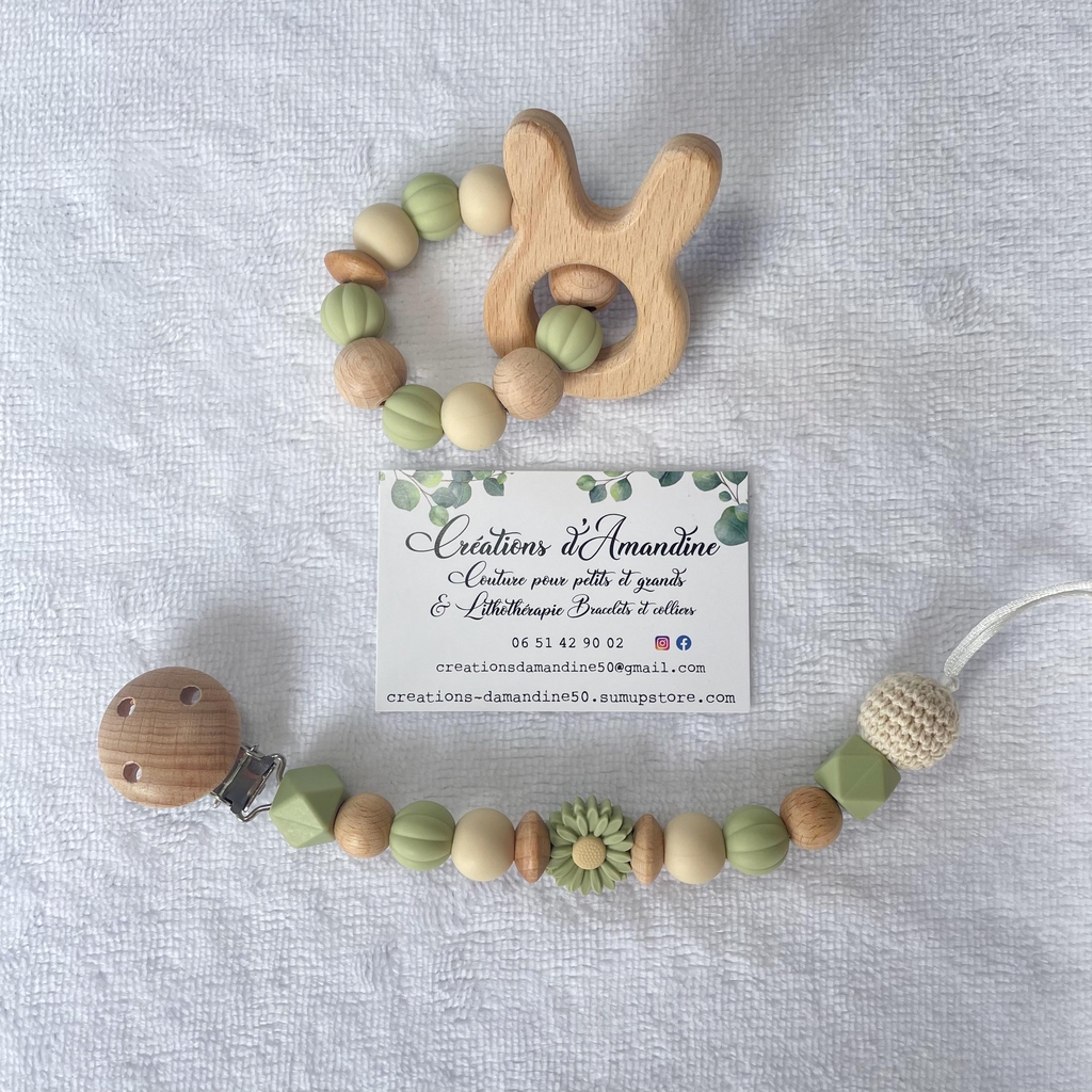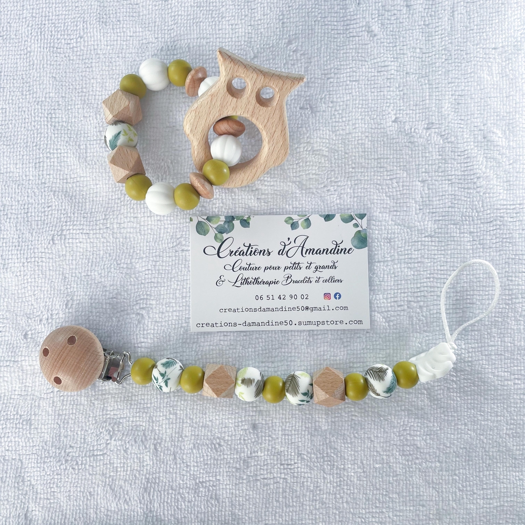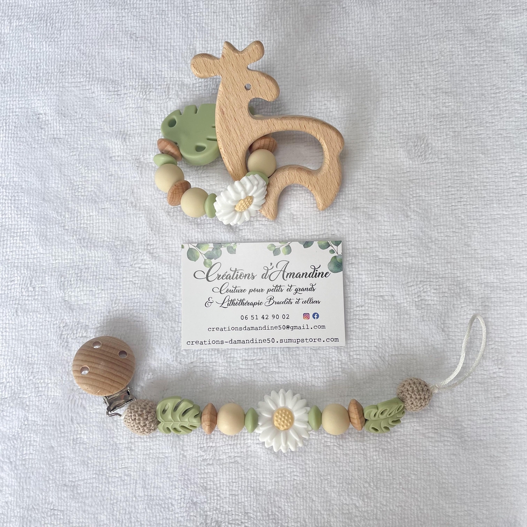 Attache tétine et anneau de dentition assortis.